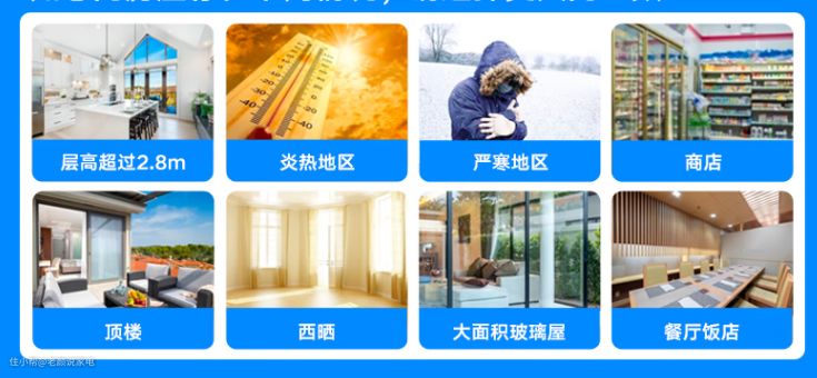需要注意的是,如果制冷环境是顶楼或者是房间有西晒的情况,经过长时间的日晒,房间的温度本来就比一般的房间要高,所以需要在原来的基础上选更大一号的匹数去购买。