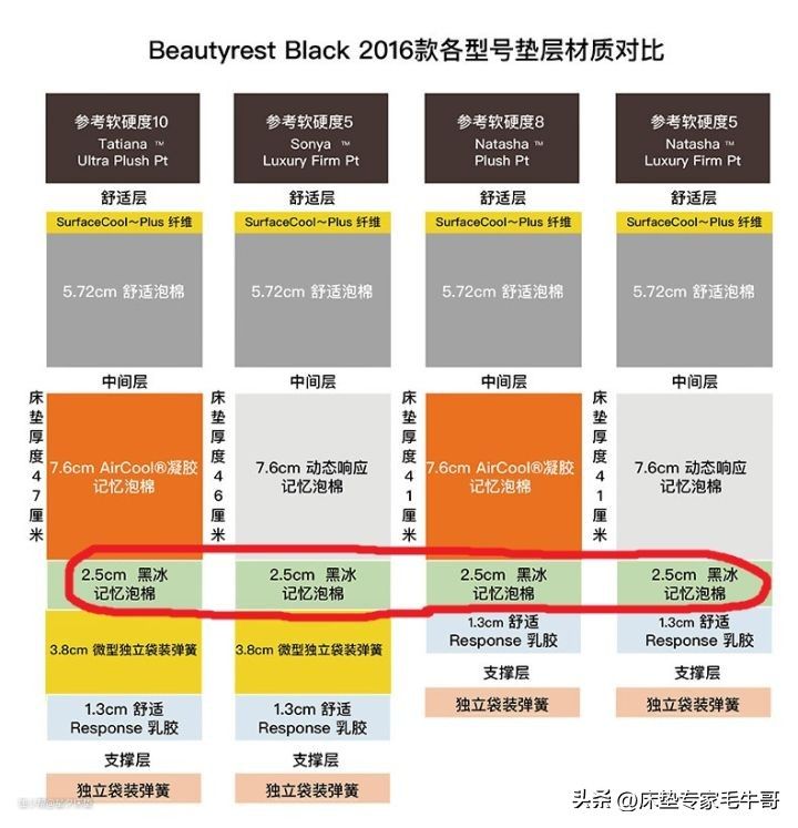 而黑科技家最贵的甜梦黑标床垫除了一般的高密度海绵和凝胶记忆棉之外,还用到了一种席梦思黑标系列独有的海绵——黑冰棉,也是能量之星深睡黑科技对标的sonya黑标系列里,那层黑色的,摸上去手感丝滑冰凉的记忆棉黑科技。