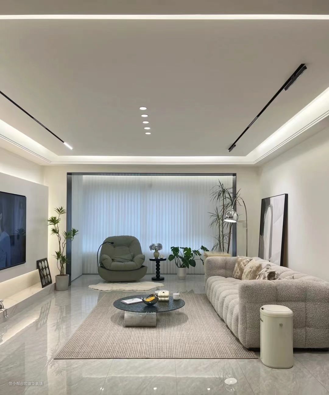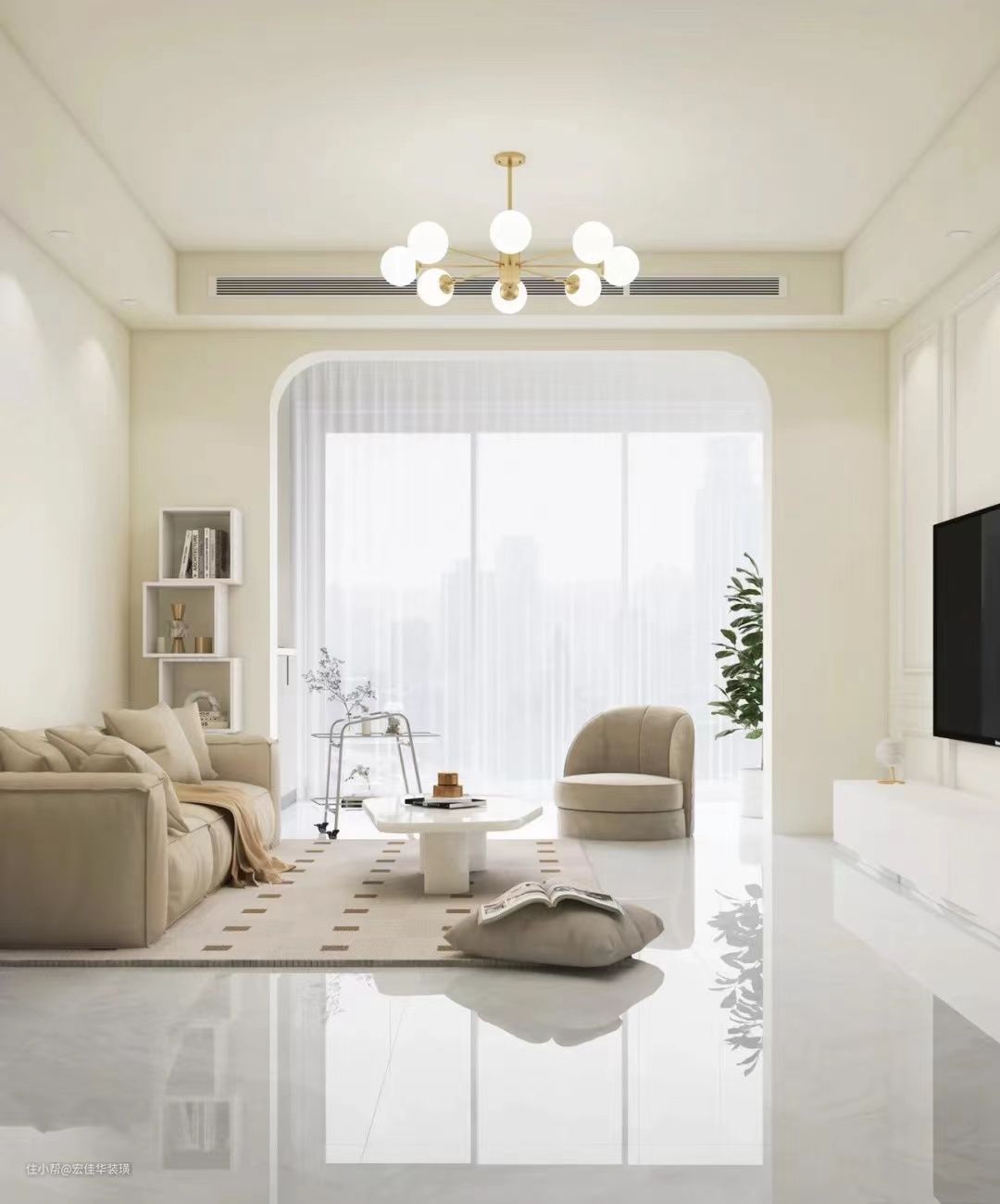 追求自流平的效果,没有任何造型也没有过门石,全屋通铺,搭配上与地砖颜色相近的美缝,显得整个空间通透又干净。