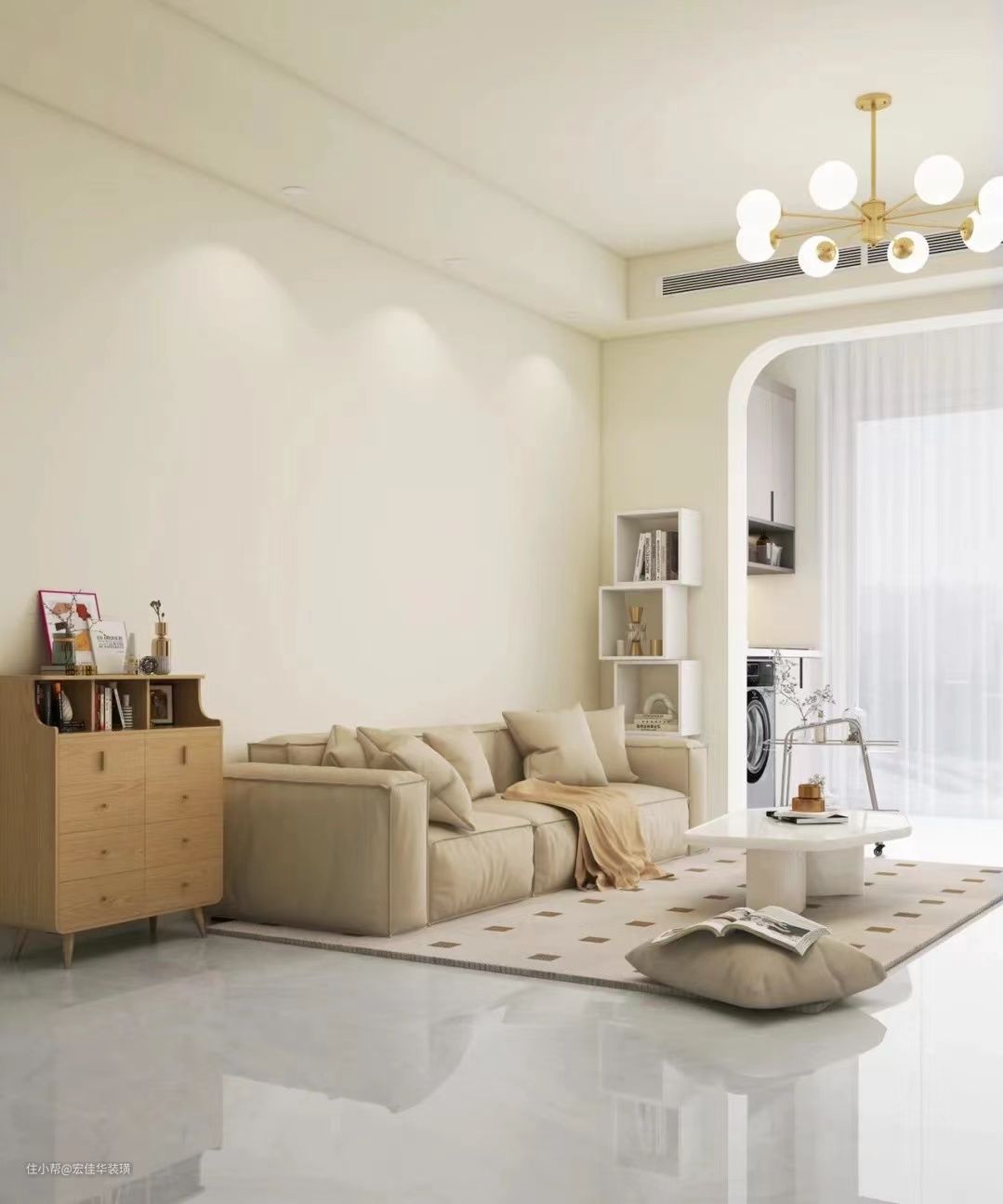 阳光洒进来的感觉温柔极了,柔光瓷砖的釉面恰到好处,微水泥细腻的纹理,简约的同事又不失质感。