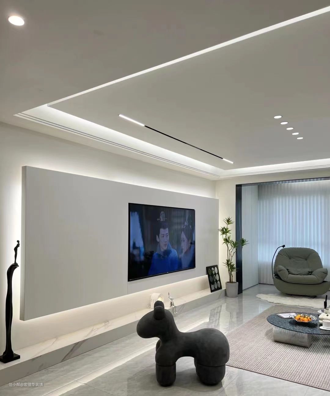 浅灰色瓷砖通铺具有延伸感,自然光线下是浅灰色,通透立体的纹理实现了整体统一和无障碍的视觉感。