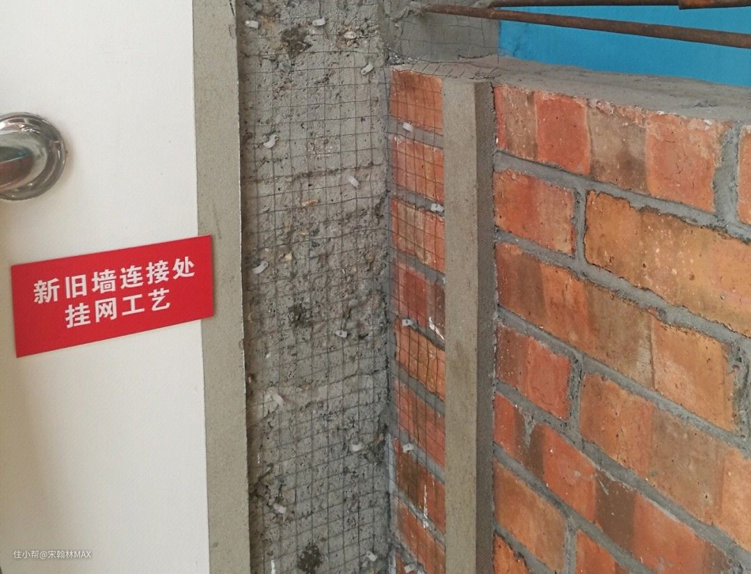 新砌的墙跟旧墙之间,注意要先挂网才能抹灰,不然后期很容易发生开裂。