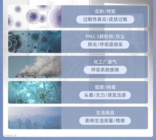但通常房子在装修过后都会产生甲醛和其他的污染物,再加上室外的空气也不是很好,也不敢随意开窗,没有新鲜空气的流通,房间里就会出现尘螨、颗粒物、粉尘等有害污染物,这些有害气体会被释放在空气中,造成室内空气的二次污染,特别影响室内的空气质量,时间久了就很容易导致呼吸道等各种疾病产生。