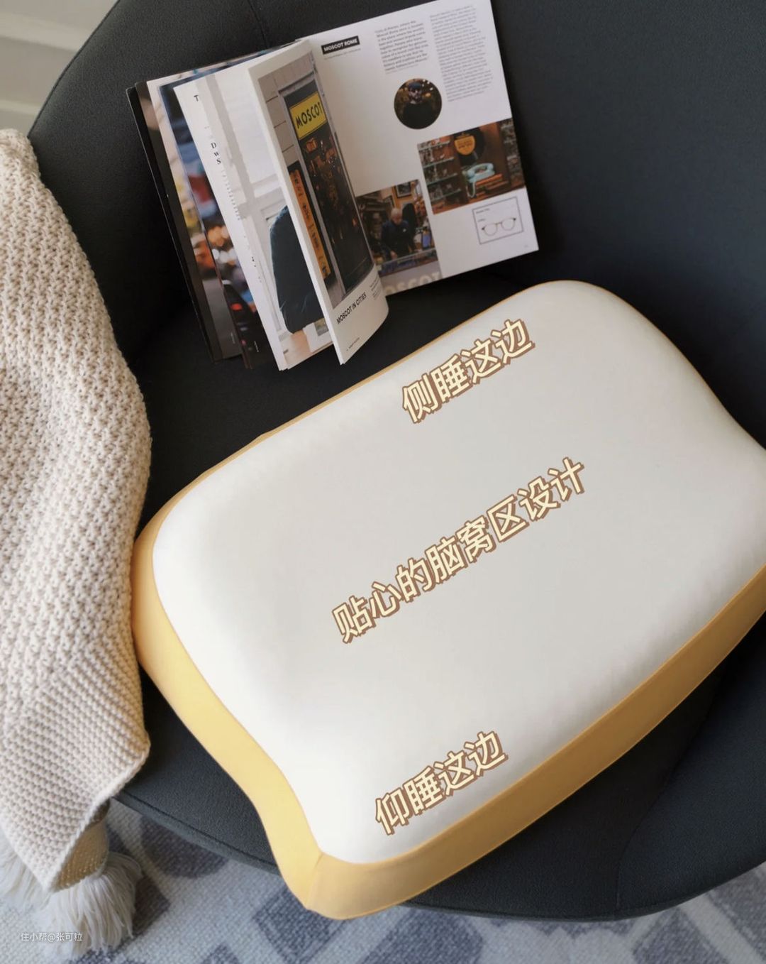 当然最主要的还是“好用”,好的枕头更重要的是用来枕“颈部”的,看这枕头,凹进去的地方是可以牢牢承托我们的脑部,让我们的脑袋一直在枕头上,有微微被包裹感,躺下去感觉很助眠。