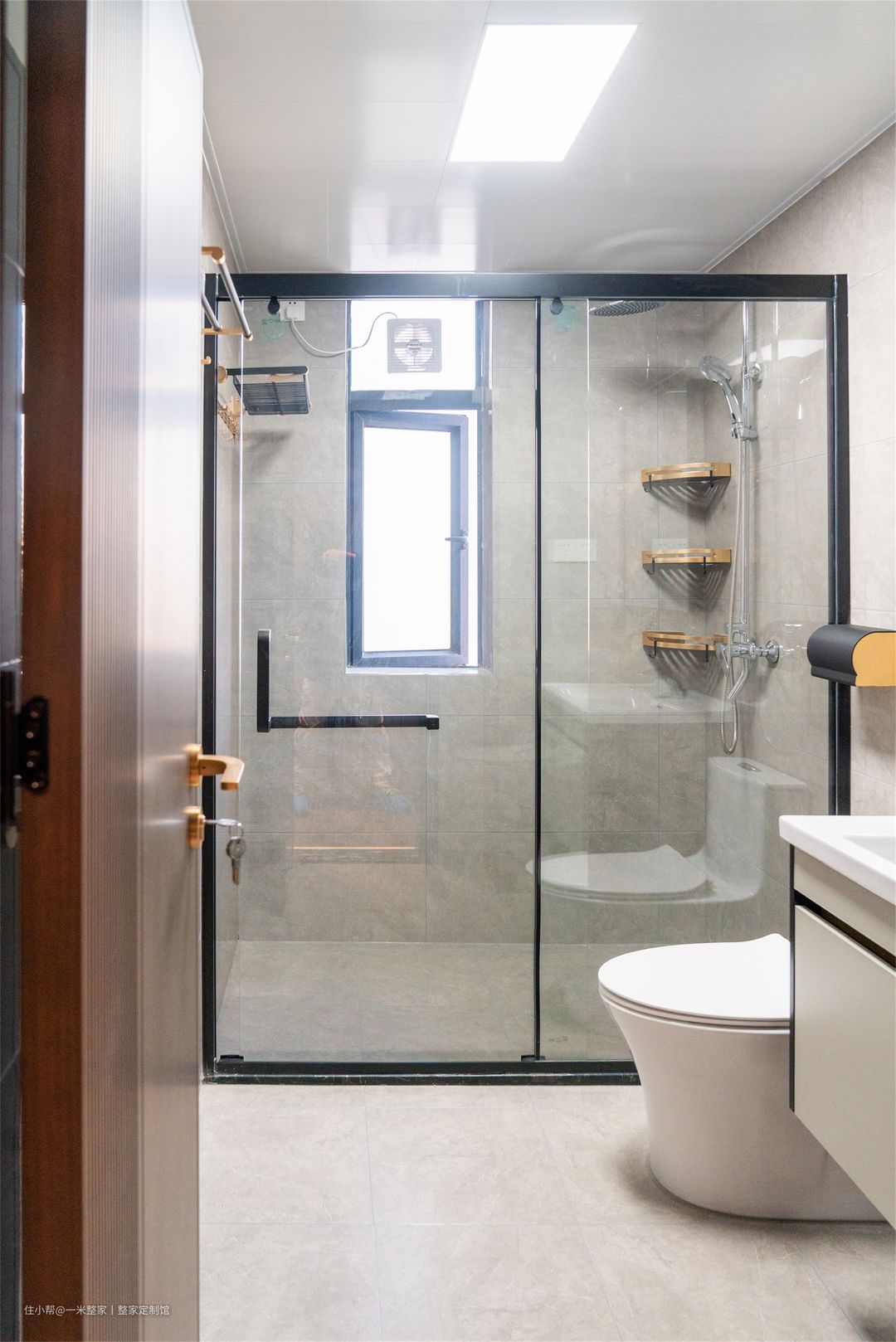 把洗漱区设在门外,把淋浴区和马桶组成的私密区设在里面,这样就方便了一家人洗手了。私密区再进一步把淋浴区和马桶进行干湿分离,就能解决水垢滋生的问题了。