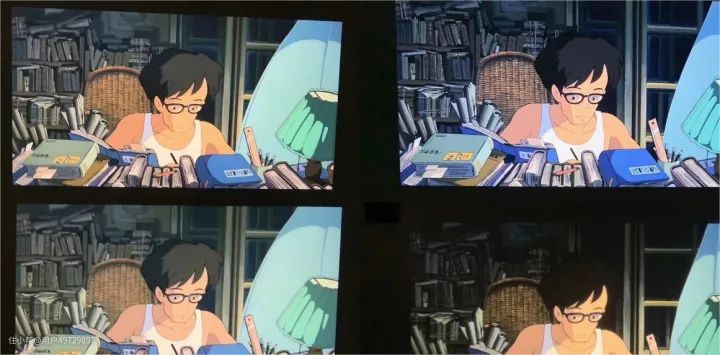越接近原彩的投影仪,越能投影出生动的画面。从投影画面和原画的对比来看,微果D1整体画面,包括人物肤色都更接近原彩,并且暗部细节呈现是最丰富的。知麻Z1的色温偏暖。哈趣K1的画面其实看着很舒服,仔细一些能看出来画面细节,人物等明亮的部位还是很清晰的。小明Q1 Pro的细节会丰富一点,暗部细节也需要需要仔细一些也可以看出来,色温部分偏冷色调。
