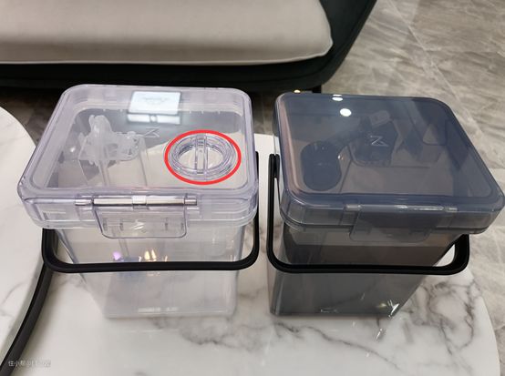 拿出来后就是这样子了、左边透明的是清水箱、右边深灰色的是污水箱。(装反的话装不进去)。