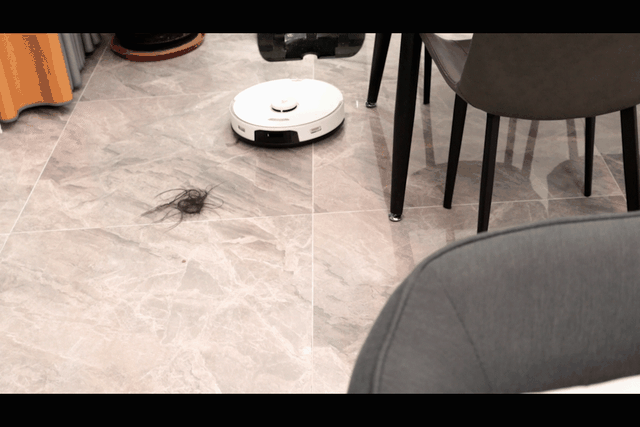 采用拼夕夕买回来的假发模拟家中女主掉的头发、可以看到地板上的头发基本上都会清理干净了、但是还存在一个小问题、石头G10是扫拖一体的、扫地机在出发前会先清洗一遍拖布后再出发、所以在面对头发时、会造成大部分头发被吸入尘盒、而小部分头发会因为湿润的拖布而沾在地板上。