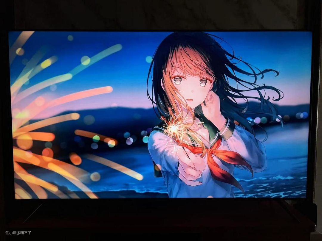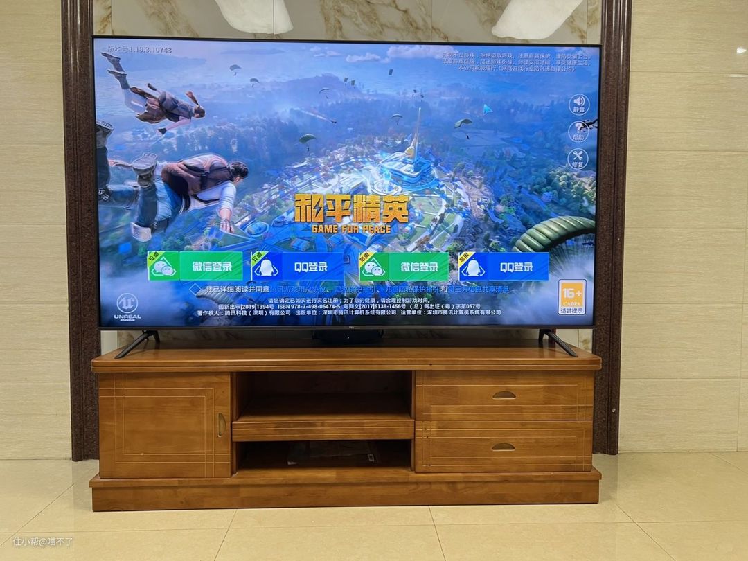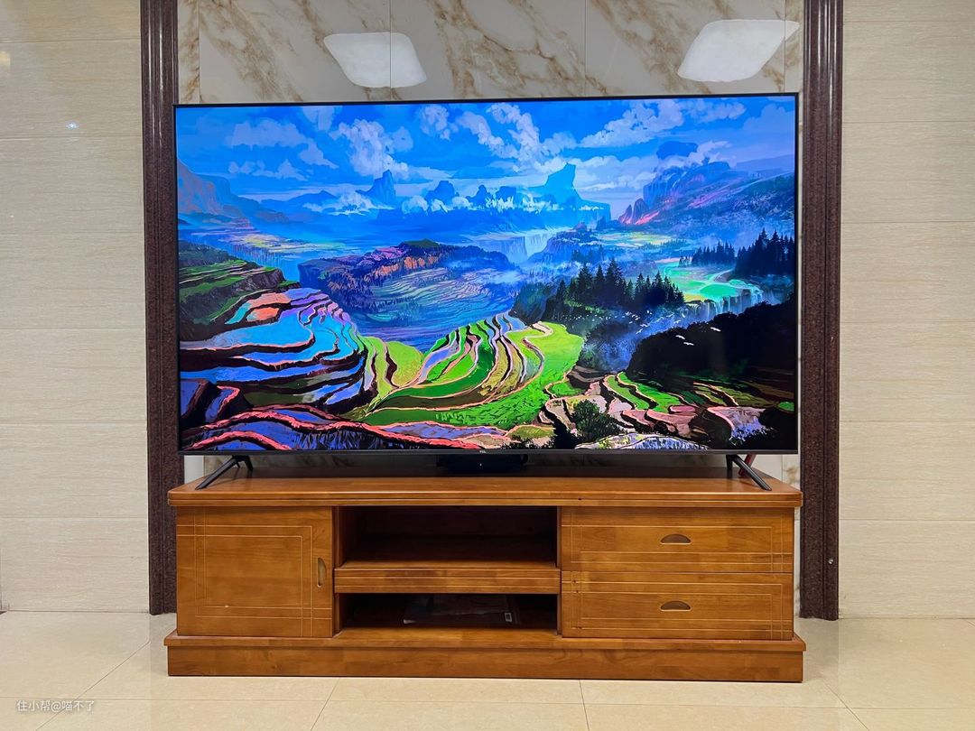 我先大家一步拿到了实物,就让我来给大家分享一下真实感受吧。当我拿到实物的第一时间,就迫不及待让售后安装好,开机的那一刻,我就发现它高达98%的屏占比让这台电视的正面几乎是一整块大屏,而全面屏无边框设计则让它在开机之后基本看不到黑边,关闭照明光源情况下更是仿佛一块大屏悬浮在空中。