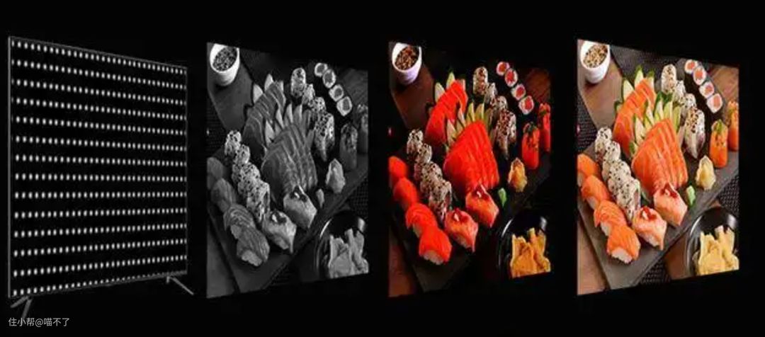 这个时候,“百分画质”就登场了,它的原理是将屏幕分成100个分区(或者更多)阵列,并且每个分区可以单独控光。这样就能让画质亮度过渡自然,一些细节也可以达到纤毫毕现的效果,对比度大幅提高,画面更有层次,细节更清晰,亮的更亮,暗的更暗。