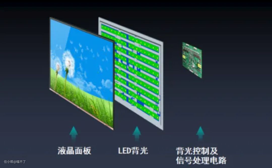 简单说来,就是电视面板本身是不发光的,它的发光是由于在面板背后有一层背光源,来照亮由三原色滤片和液晶层构成的液晶面板,实现成像。