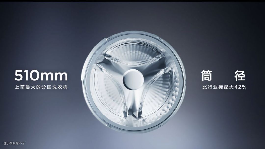 这里需要提一下,筒径的大小并不是随便增大的,更大的筒径意味着其振动的力度更大,当上下筒同时开启时,洗衣机的振动能力造成的噪音是巨大的,但因为前面说过的TCL在这方面的技术方案,所以增大到这个程度完全没问题,因此,想要增大上筒容量没点技术是不行的。