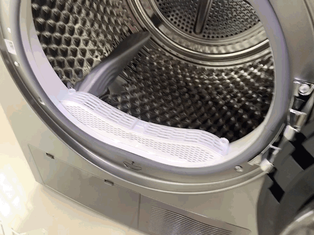 优点:烘干效率最好,节能、噪音小、有绒毛过滤功能、对衣物的损伤最小;