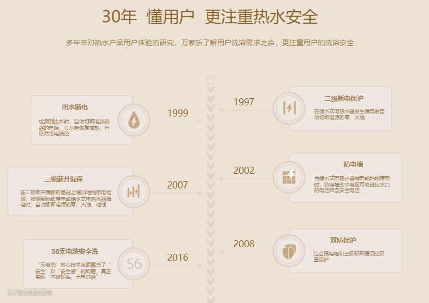 纵观整个万家乐在近三十年来的发展,从1997年开始着手研究的二级断电保护直到2016年首次推出划时代专利“无电洗1.0”,一直发展到今天的“无电洗2.0-智慧无电洗”。对客户的体验和需求他们从未停止脚步,对安全洗浴从未放松。