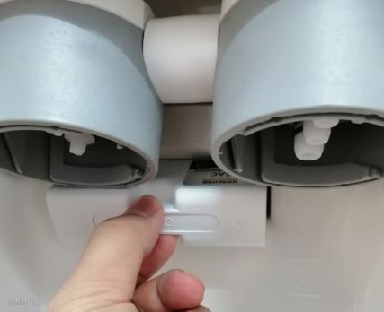 滤芯的更换是很简单的,只需要抬起一下滤芯,然后轻轻往左一拧、往下一拔,就拆出滤芯: