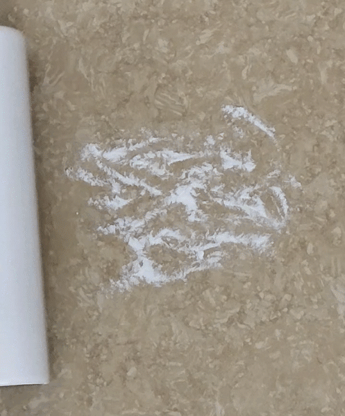 可以看到,在靠近滚筒的位置,测量的噪音大小为59.4分贝,数值并不高,实际体感来说,基本上在客厅进行清扫的话,房间里是完全听不到的,噪音控制的很不错。 扬起灰尘方面,在清洁了灰尘地面时,我特意拍了一张清洁面粉的动图: