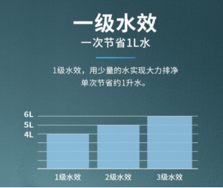 一是节水,我们可以查看全冲水用量和半冲水用量,水用量越少越节能;我们还可以查看水效等级,等级越低越节水,一级水效>二级水效>三级水效。