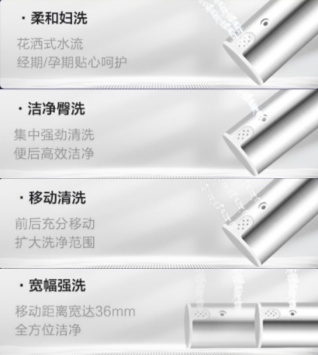 人体清洁功能主要看其清洁模式是否丰富,常见清洁模式有臀洗、妇洗、儿童洗、强劲洗、脉冲水洗、宽幅清洗、移动清洗、富氧气泡洗、按摩洗。