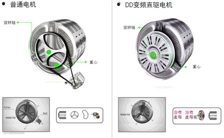 传统电机是皮带轮带动皮带传动,噪音大,而且效率,问题也多,低如皮带断掉了,洗衣机就会发生完全不能工作的情况了。DD电机是现在效率更高,而且噪音非常小的一款电机,一般是应用在中高端洗衣机上,但是他的唯一缺点是就维修成本会更高。