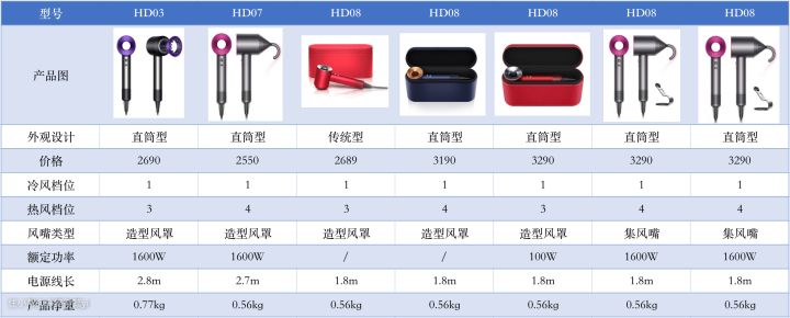 先为大家分享一下戴森型号之间的差异化: