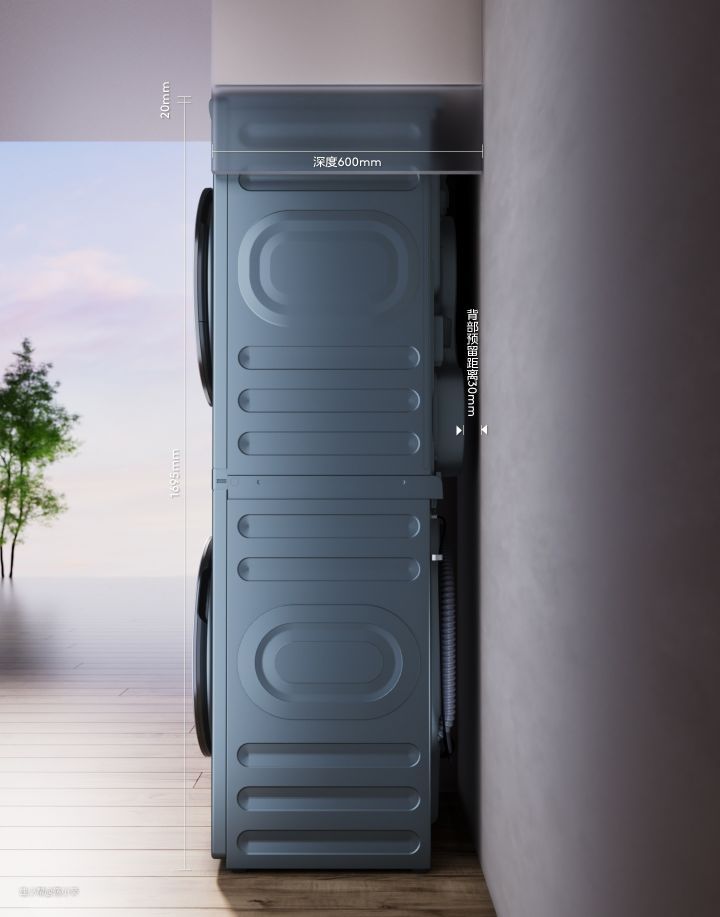 这里首先要搞明白机器尺寸和安装尺寸,单独给大家讲讲: 目前主流的家居柜体深度尺寸为600mm,而传统的洗衣机、烘干机本体深度就已经达到了600mm左右。
