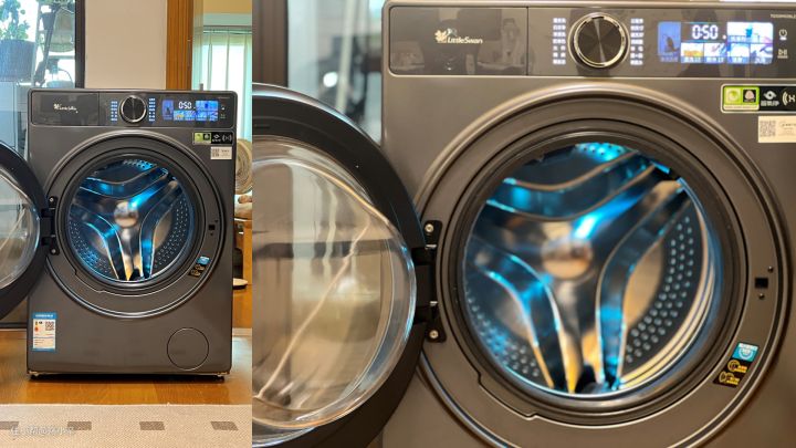 对比我之前的洗衣机,小天鹅的舱门达到36cm,之前洗衣机舱门小,取衣服的时候只能看到里面部分区域,不能按需决定取出衣物的顺序(例如先取裤子,再取内衣,再取袜子)。 大舱门的好处就是,即便机身如此轻薄,但完全不影响10KG的大容量,能清楚看到几乎全部衣物,还可以精准取衣。
