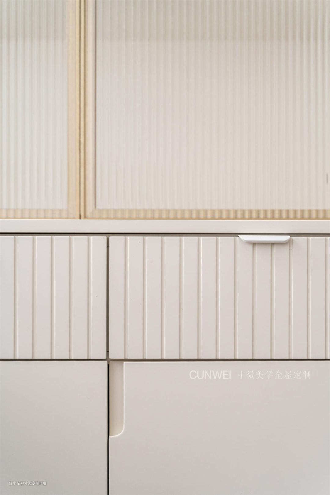 抽屉区域用到了混油抽缝工艺,搭配铣槽免拉手柜门的设计,简约又不失精致感,在满足实用性的基础上,带来视觉上的审美享受。