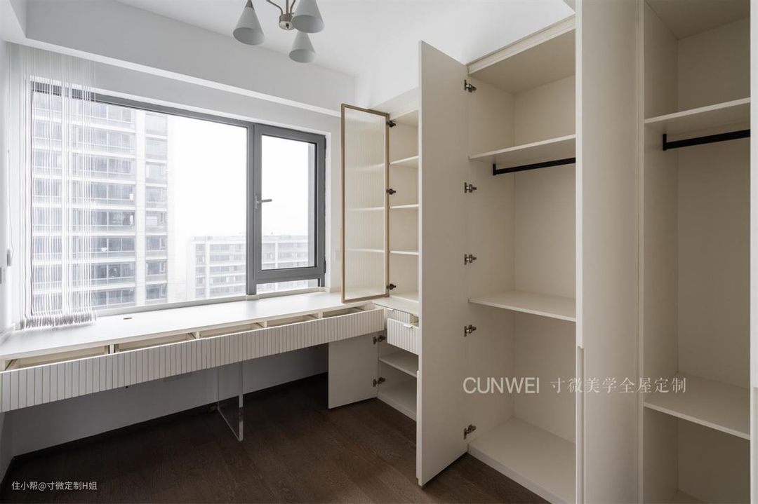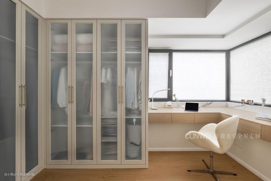 宁愿不要书房,也得有个多功能衣帽间,衣柜延伸出书桌,一房二用