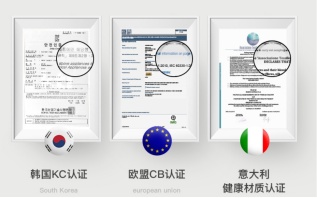 如果是进口品牌就要看是否有国外的相关安全资质,比如说欧盟CB认证、意大利健康材质认证以及韩国KC认证。
