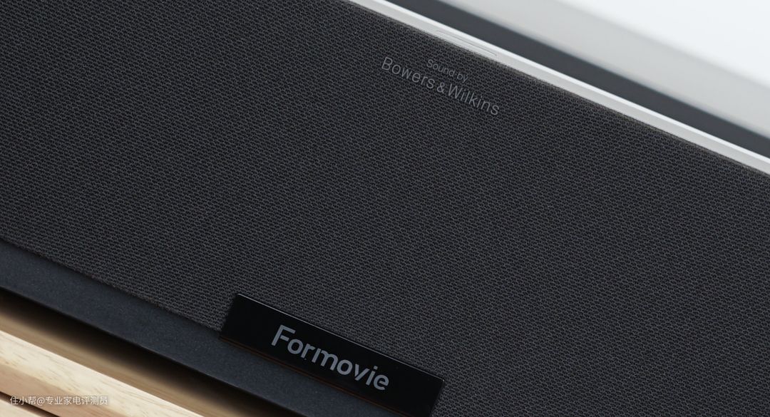 峰米T1全色激光电视的正面,搭载全球豪华音响品牌宝华韦健联合定制音响。采用两个直径为7CM玻璃纤维中低音、中频扬声器以及一对直径为2CM的钛高音扬声器(负责声场),硬件配置拉满!内置音响的音质非常好,并且支持杜比全景声和DTS HD。