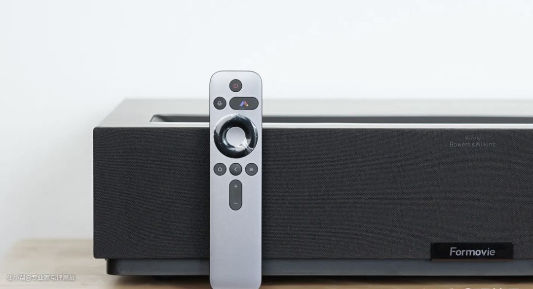 峰米T1全色激光电视随设备配备了遥控器,遥控器是支持蓝牙和红外两种方式,因此可以不配对投影仪直接使用。不过由于红外信号传输需要对准红外接收口,因此推荐进行蓝牙配对,这样可以不论什么角度,都可以轻松操控。T1的遥控器实体功能键采用目前主流的设计语言,配合峰米专为大屏研制的FengOS系统,上手简单容易,老人小孩均可快速上手操作。