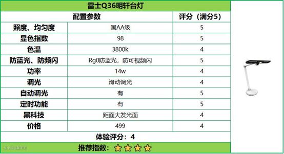 雷士明轩台灯整体呈白色,风格简约,两段铝合金制的灯臂、灯座和灯头之间都通过高强度转轴连接,灯头发出的T型光更符合常规书桌面,可轻松覆盖1.8米长桌,高强度金属转轴可保证垂直、水平双方向更大的范围调节。国AA级照度,健康自然光,Rg0无蓝光伤害,无可视频闪,Ra95高显指,漫反射透光面防眩护眼,0蓝光助眠小夜灯,智能感光调节明暗,45分钟定时休息,各种功能和特性应有尽有。