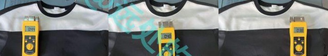 测得左中右的含水率分别为4.4%、4.0%、3.8%,很明显比原来的8.04低一半,手感摸起来也确实是可以直接穿了;