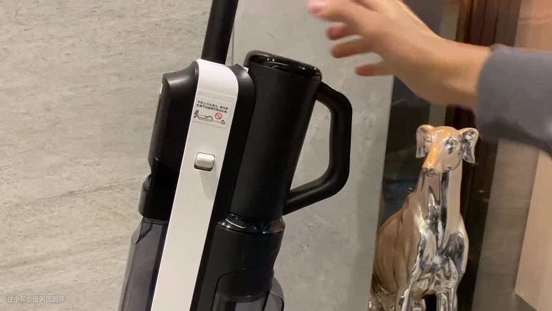 水箱部分有点小,但有清水、污水分流,不存在交叉感染,如果说100平的房子一次性打扫下来应该要加一次水,使用完放回底座就能自清洁。它自己能清洁,就不会弄脏我的手,而且没有任何异味。收纳的同时它就在充电。 除了这些我知道大家还关心续航,它是4000mAh的锂电池,续航时间挺短的,也就半小时左右吧。具体耗电速度通过屏显就能看到,而且可以实时看。以它这个电量,适合90㎡左右的户型,大户型不建议。