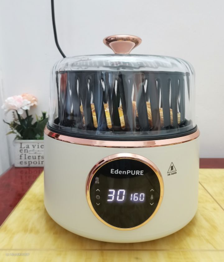 一台8用,相当于同时拥有烤箱、煎锅、解冻机、酸奶机、发酵机、空气炸锅、干果机、电烤炉。烤炸一体,操作简单易上手,属于懒人的福音。