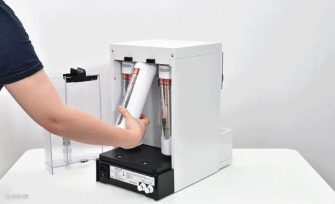 RO反渗透技术,4种过滤芯片,5级过滤,保证水的质量;人工智能控制,滤芯使用寿命会及时提醒,同时一键下单就可以购买到滤芯;更换滤芯的方法十分简单,即使是老人或是小孩,3秒即可实现换芯
