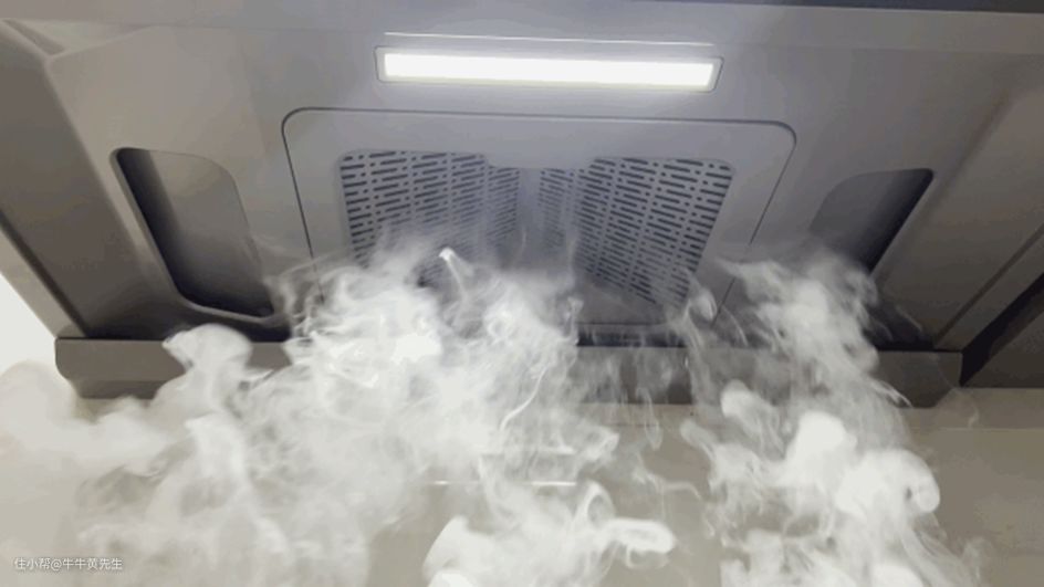 其实我觉得这个有点像把顶吸和侧吸结合起来了,中间的主进风口看成顶吸,左右两侧进风口看成侧吸,大大减少了油烟逃逸率。