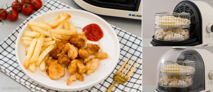 只需要简单旋下温度,设好时间,中间翻动一下,就能尝到和M记,K记一样美味的薯条鸡米。