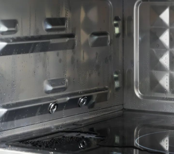 可以看到,用抹布轻轻一擦,就能把内胆擦干净,大大减少了我们在做饭后清理烤箱的时间跟清理难度。