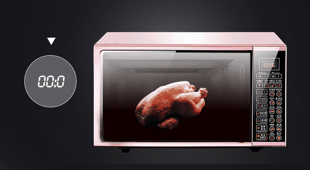 这里的微波炉指的是普通款式,内置微波发射器,利用微波与食物内水分的运动而加热食物。