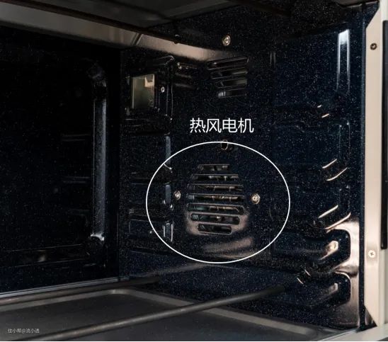 再加上立体热风循环技术,就是利用位于烤箱侧面的这个热风电机,吹动烤箱内部热量,促进热力循环流动。