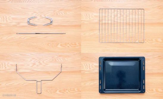- 一套烤叉,可以叉着一只鸡来滚动烤,360°烘烤,上色均匀