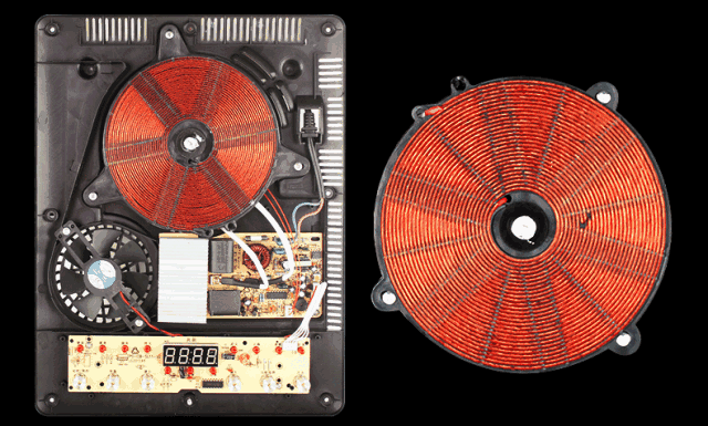 电磁炉的炉面是耐热陶瓷板(结晶玻璃),主要工作原理是让陶瓷板下方的线圈通电,从而产生磁场,磁场内的磁力线产生涡流,令锅底迅速发热,从而加热食品。
