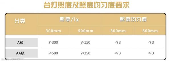 照度不够或者不均匀,就无法良好视物;照度过大,也容易损伤视力。所以照度指标的选择很重要。根据国家标准划分,分为了AA级、A级。