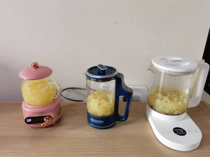 最后一项就是炖煮效果的检验了,这里就要看的是炖煮出来的食品的颜色、味道了,所以我用同样重量的银耳,都炖了500ml的银耳汤,给大家试一下这几款养生壶的炖煮效果