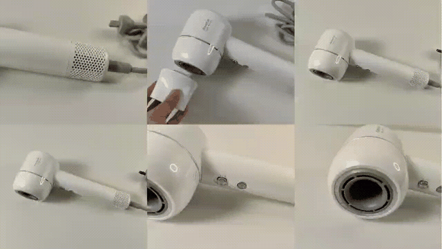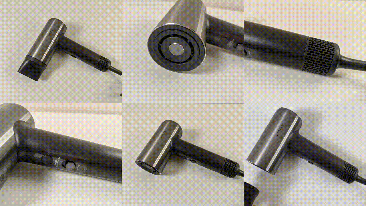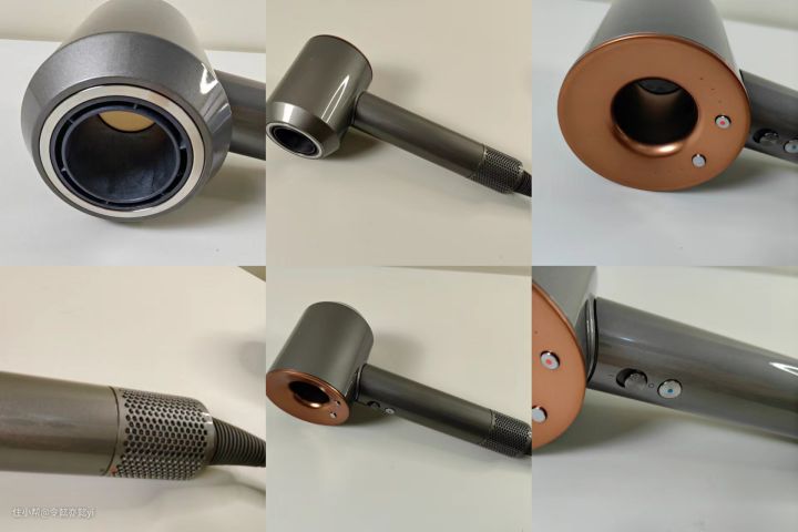 这款吹风机是戴森的经典产品,外观还是非常炫酷的,金属质感的机身,搭配彩色的风口,显得比较跳脱,不过机器的重量控制稍微差了一些,是四款高速吹风机中最重的一款,使用长了会有些坠手。