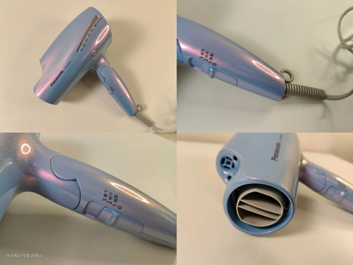松下的这款吹风机看上去外型很敦实,短粗短粗的,看上去并没有那么时尚,但是由于重量较轻,拿在手机的手感还是很不错的,值得一提的是渐变的配色,很受女孩子的喜欢。