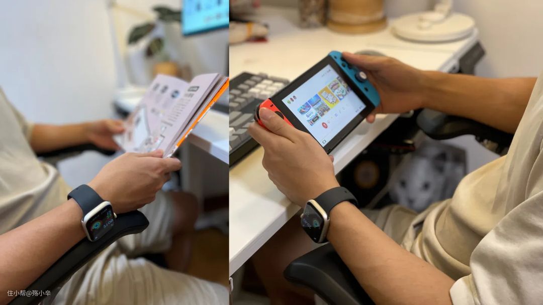 当你拿着手柄玩游戏、看电影、使用鼠标键盘办公的时候都可以根据你手臂的角度调整扶手,进行很好的支撑。