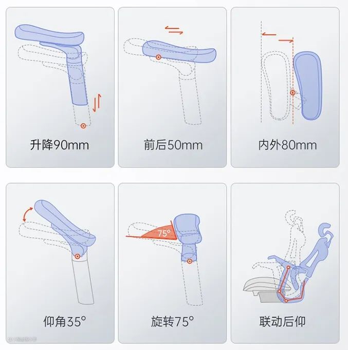 扶手还是和靠背联动的,当你调整了靠背,扶手也会跟着到相应的角度~~