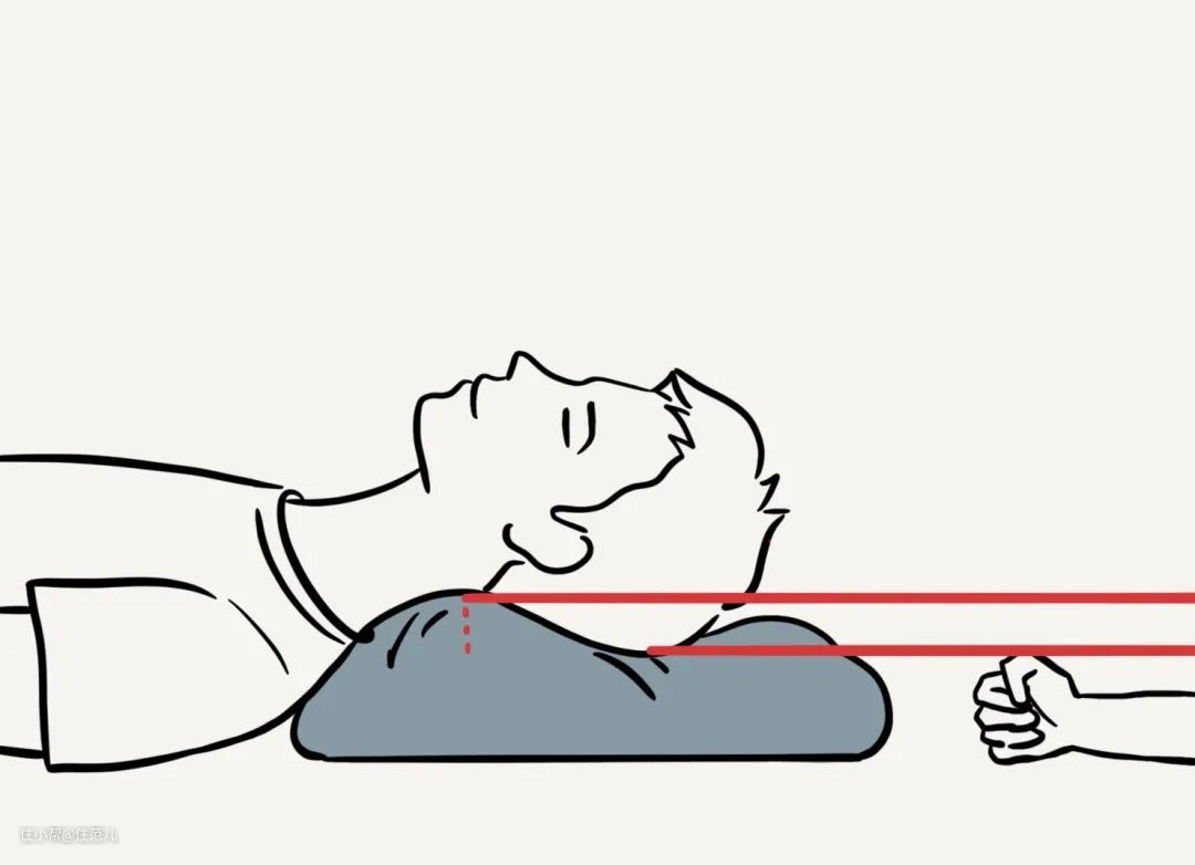 想选一款高度合适的枕头,有个比较直观的方法是当你躺下后,头部释压区正好是一拳高,拳头的高度外加3~5厘米便是你颈椎需要的高度,这种测量方法比较适合爱平躺睡觉的人。